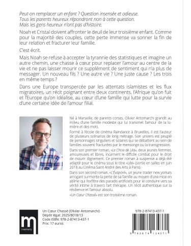 Mais Noah se refuse à accepter la tyrannie des statistiques et imagine un autre chemin, une chasse à cœur pour replacer l’amour au centre de la vie et ne pas laisser mourir ce supplément de sentiment qui n’a plus de messager. Un nouveau fils ? Une autre vie ? Une juste cause ? Les trois en même temps ?